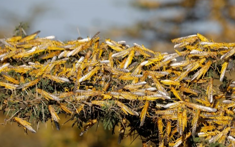 La exterminación de la plaga de langostas se realiza mediante químicos por las mañanas, que es cuando los insectos no vuelan, conforme avanza el día va haciendo efecto y mueren. En lo que va de 2020 se han eliminado 80 mangas.