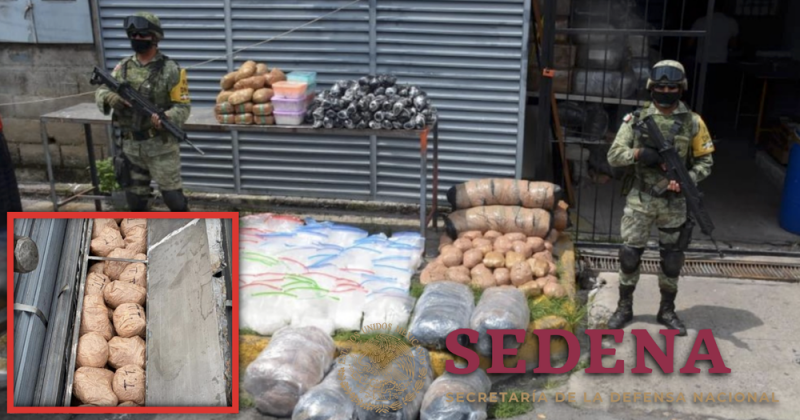 Elementos del Ejército Mexicano dieron un gran golpe a los narcos tras detectar casi media tonelada de la droga conocida como cristal que estaba escondida en paquetes, perfectamente acomodada en un compartimiento especial de un tráiler.