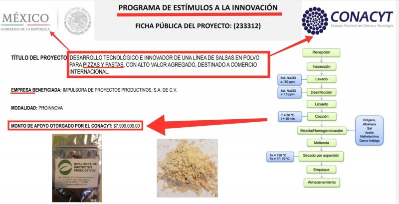 salsas en polvo para pizzas a través del Consejo Nacional de Ciencia y Tecnología