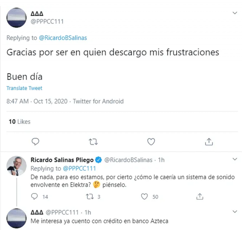 Por su parte Ricardo Salinas Pliego ha respondido cada uno de los ataques de la forma más inteligente y parece seguir el juego de sus "haters", asimismo, entre los cientos de comentarios explicó que hasta el día de hoy se encuentra bastante estable y no ha experimentado ningún síntoma.