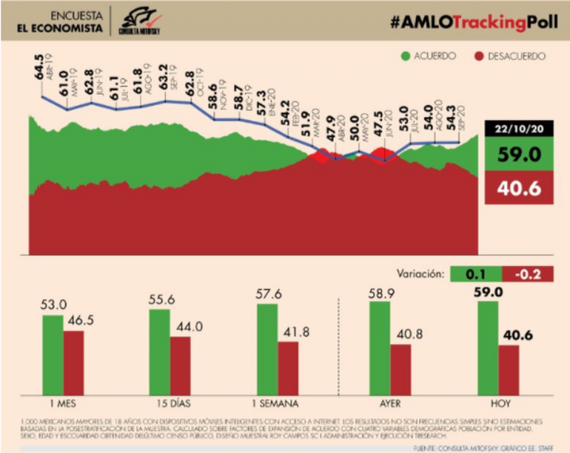 El Economista ha publicado una nueva encuesta del llamado AMLO Tracking Poll, la cual realiza en alianza con Consulta Mitofsky de Roy Campos.
