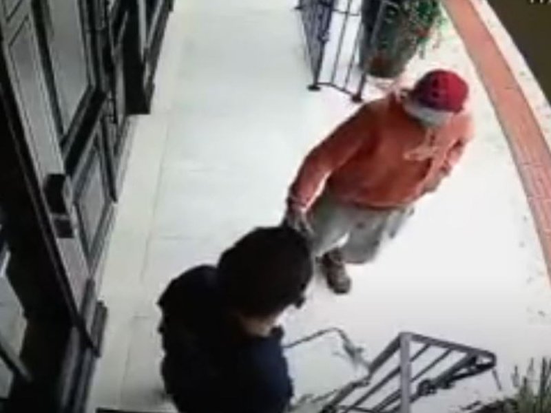 En el video se puede ver a un trabajador tocando el timbre de una casa, solo pasan unos pocos segundos cuando otro sujeto lo aborda e intenta quitarle su celular.
