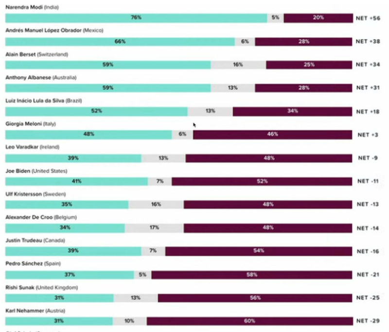 Cabe señalar que la encuesta es realizada por la empresa Morning Consult y que los resultados revelados equivalen a la tercera semana de enero de 2023.