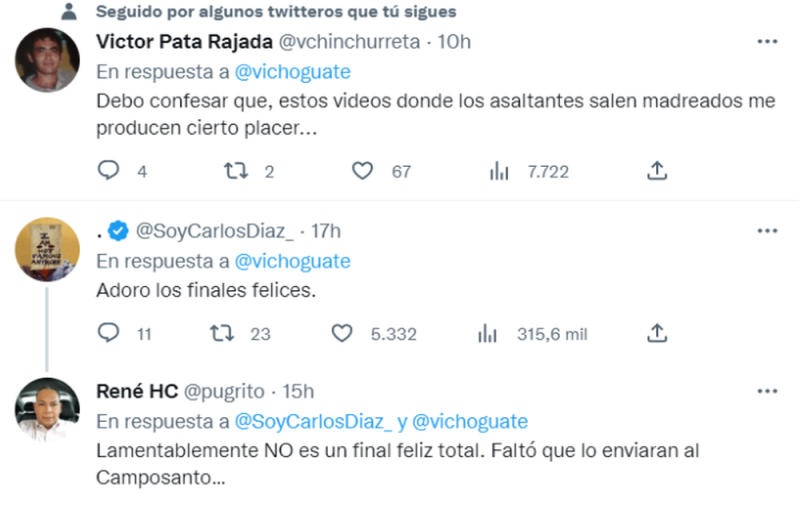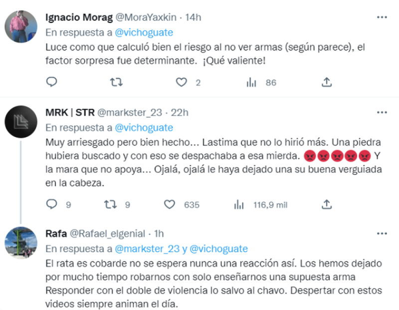 Hasta el momento no se conocen más detalles de lo que se puede observar en el video, salvo que sucedió en las calles de la zona 15 de Guatemala, en calles aledañas a la Universidad del Valle y que uno de los ladrones terminó ensangrentado.