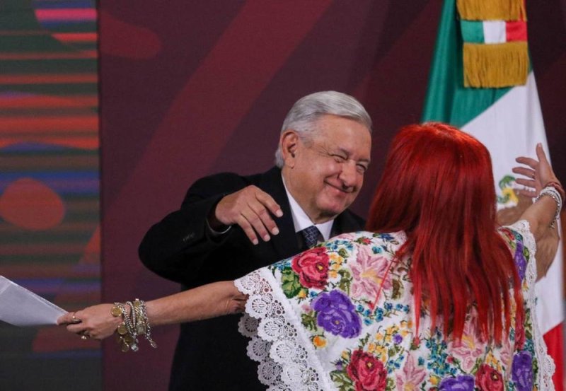 Layda Sansores, gobernadora de Campeche, le dio un tierno abrazo al presidente Andrés Manuel López Obrador (AMLO) en su mañanera por la construcción del Tren Maya.