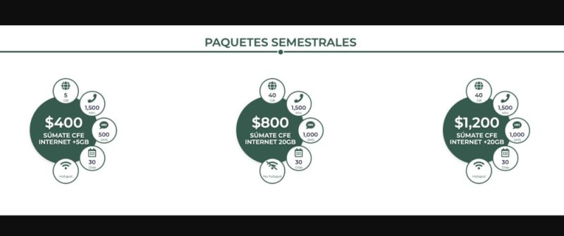 El primero es de 400 pesos, este tiene 5 gigas de internet, 1,500 minutos y 500 mensajes además de compartir internet con otros dispositivos por 30 días seis meses.