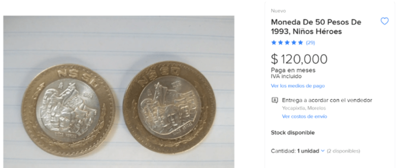 Su valor actual de intercambio es de 50 pesos, pero en el mundo de la numismática se cotiza hasta en 120 mil pesos.