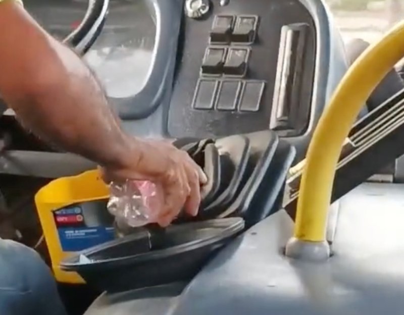 A través de las redes sociales se mostró el momento en que un conductor de microbús oriundo de Cancún, Quintana Roo, utilizó la botella de plástico como mango para poder realizar los cambios de su vehículo, pues esta parece no tener la palanca completa, lo cual le dificulta manejar cómodamente.