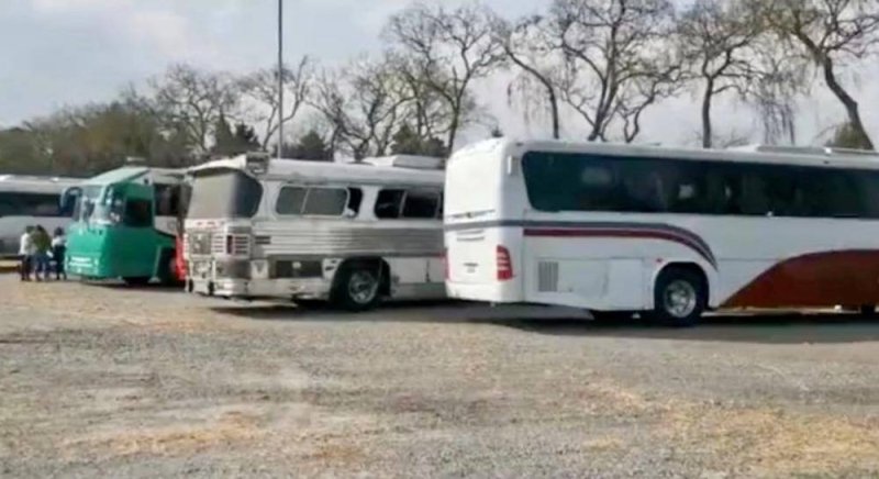 Los autobuses donde trasladaron a las niñas y niños fueron estacionados a un costado del evento, pues en las fotografías se puede apreciar el templete al fondo donde Alejandra Del Moral llegó dos horas después de que los menores arribaran al lugar.