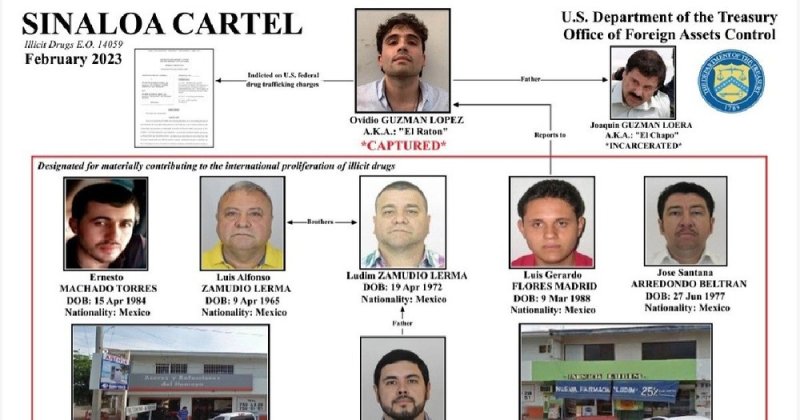 Los otros mexicanos sancionados son: Ludim Zamudio Ibarra, hijo de Ludim Zamudio Lerma, Luis Gerardo Flores Madrid, que trabaja para Ovidio Guzmán López, Ernesto Machado Torres y José Santana Arredondo Beltrán, estos últimos operadores de laboratorio.