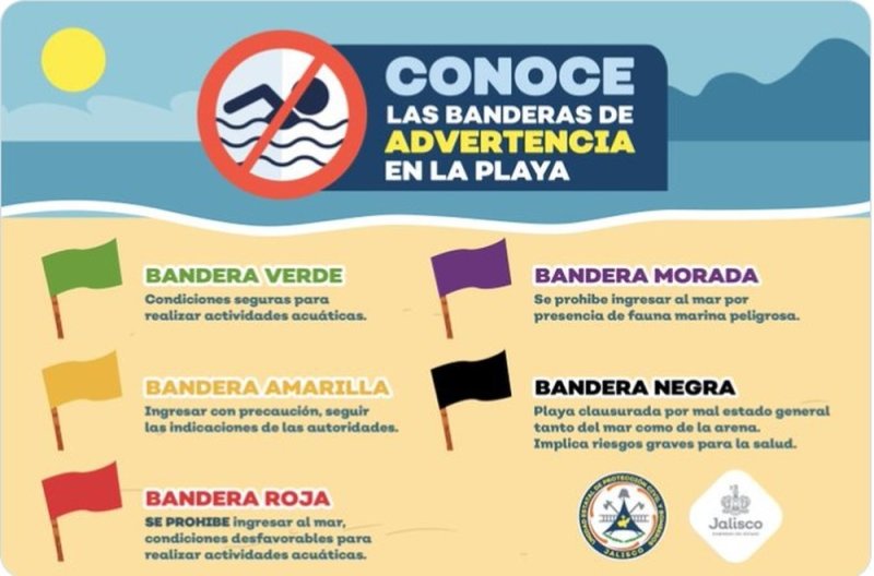 ???? #IMPORTANTE ???? Como medida preventiva, ante la presencia de un tiburón en la franja costera del municipio de Cihuatlán, Región Costa Sur, se establece BANDERA MORADA ???? desde Melaque hasta Barra de Navidad. ????
