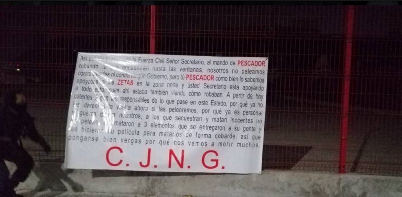 En la misiva, el CJNG refiere al enfrentamiento que tuvo con elementos de la Fuerza Civil en Misantla, donde tres sicarios fueron abatidos.