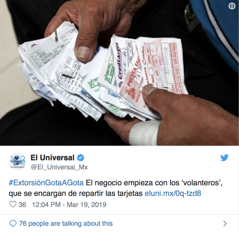 “Sin estigmatizar, pero importaron un modelo que fue creado en Colombia, en Bogotá, en Medellín, el ´gota a gota´; algunos colombianos empezaron a traer ese sistema de actuación aprovechando la necesidad de liquidez de la gente”, explicó el secretario de Seguridad Ciudadana, Jesús Orta Martínez.