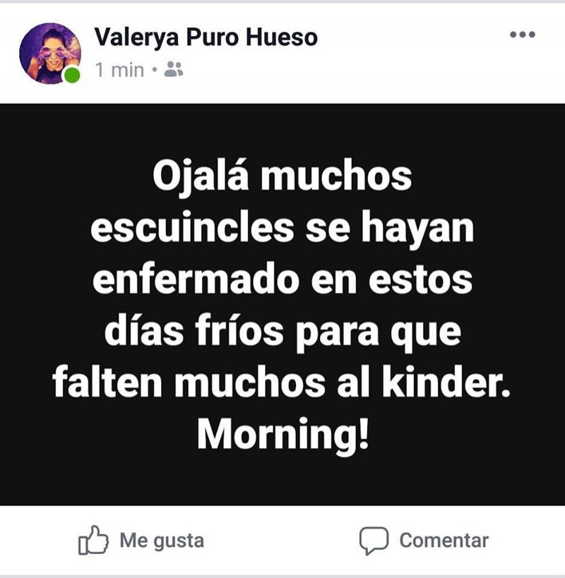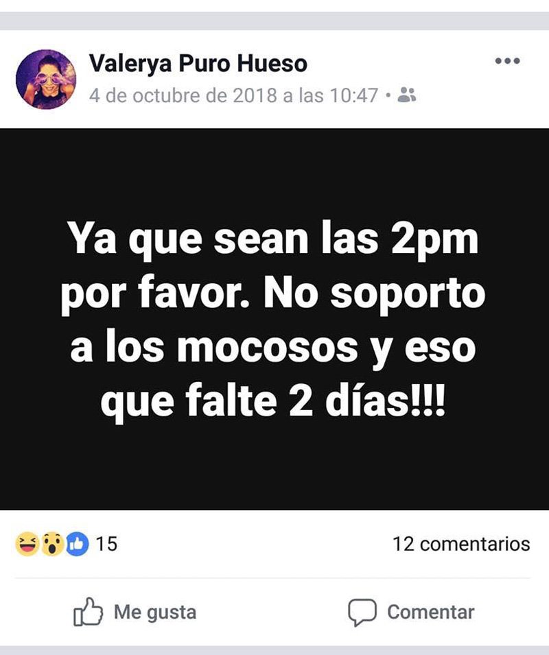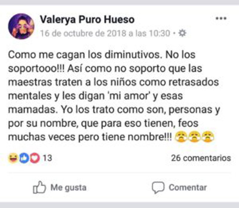 La maestra, que en sus perfiles de redes sociales tenía el nombre de Valerya Puro Hueso, usaba dichas plataformas para burlarse de lo “feos” que son los niños a los que daba clase.