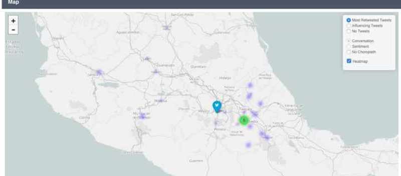 Sin embargo dichas cuentas de Twitter no eran de estudiantes de la Ibero sino de movimiento juvenil de Acción Nacional. Y al analizar detenidamente la dinámica de los tweets del hashtag y mencionando a Cárdenas, se encontró a través de Map Trends que la mayoría de los mensajes provenía desde ciudades como Guadalajara Jalisco y otras zonas del bajío.