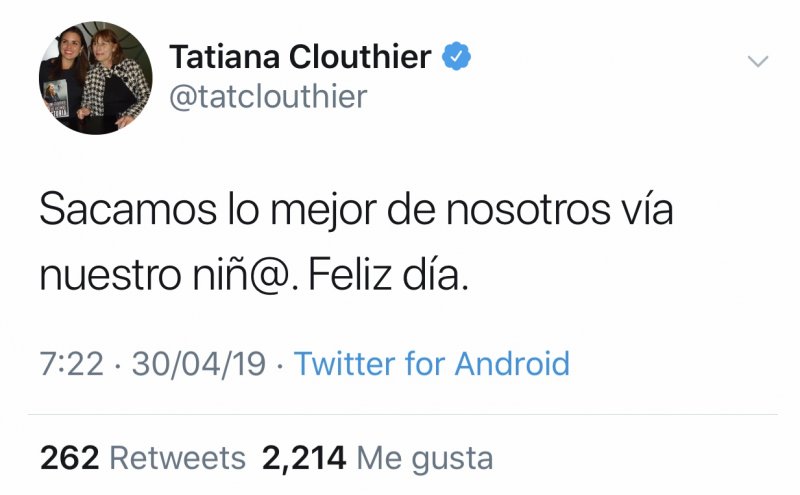 Asimismo, a través de su cuenta de Twitter, la morenista publicó: “Sacamos lo mejor de nosotros vía nuestro niñ@. Feliz día”.