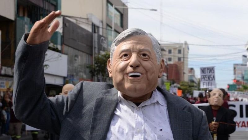 Saludando a todos los asistentes, el doble de Andrés Manuel caminó por el centro de la avenida Álvaro Obregón, la más importante de la ciudad, mientras que en su otra mano tenía una cuerda con la que tenía atados a Salinas de Gortari, Enrique Peña Nieto, Felipe Calderón y Vicente Fox.