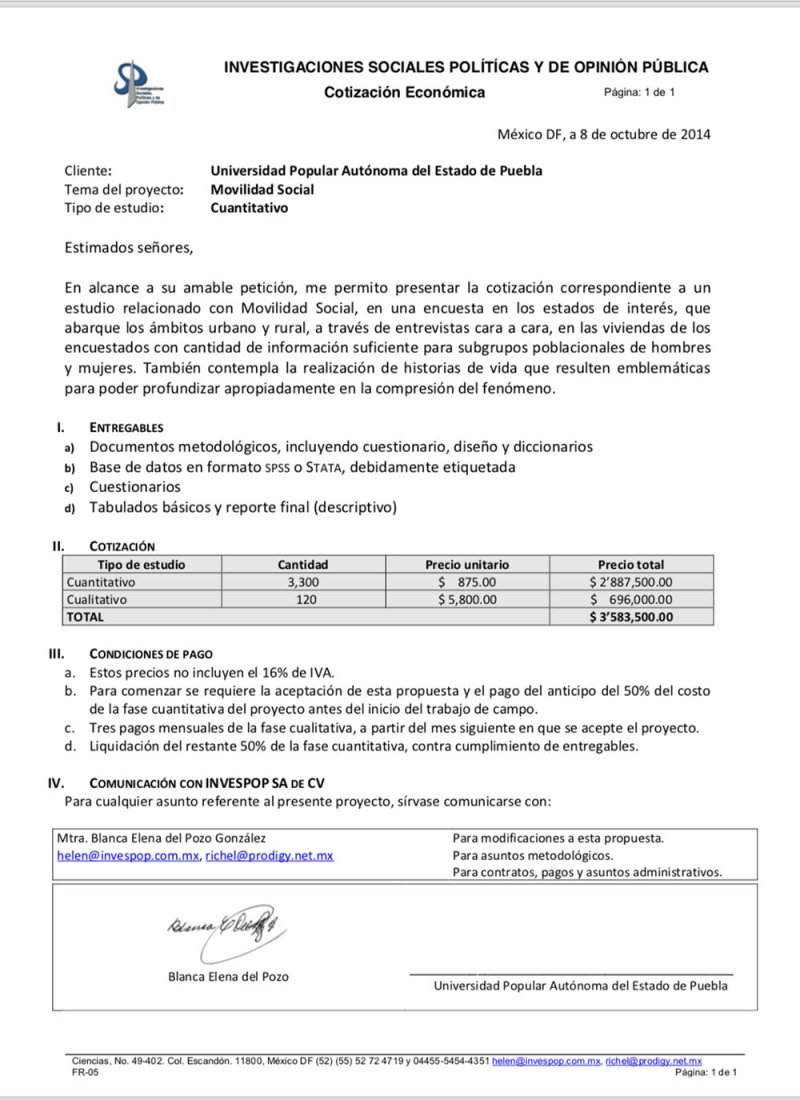 Tenía sus razones: un recurso del tal magnitud sería entregado así de manera directa y otra, porque Invespop no figuraba ni siquiera en la lista de proveedores de la UPAEP.