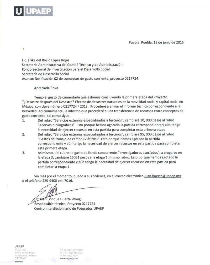 El dinero público se canalizó por la Sedesol federal para una investigación de movilidad social ante los desastres naturales, cuya contratación fue en 2014 y se ejecutó y pagó en 2015.