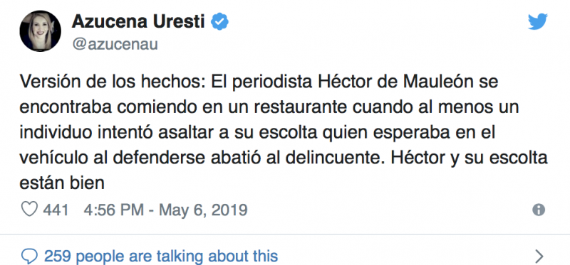 Otras versiones apuntan a que el escolta del periodista, un militar en retiro, habría sido agredido durante el presunto intento de asalto, cuando este esperaba en el vehículo en los alrededores de un restaurante donde Héctor de Mauleón comía.