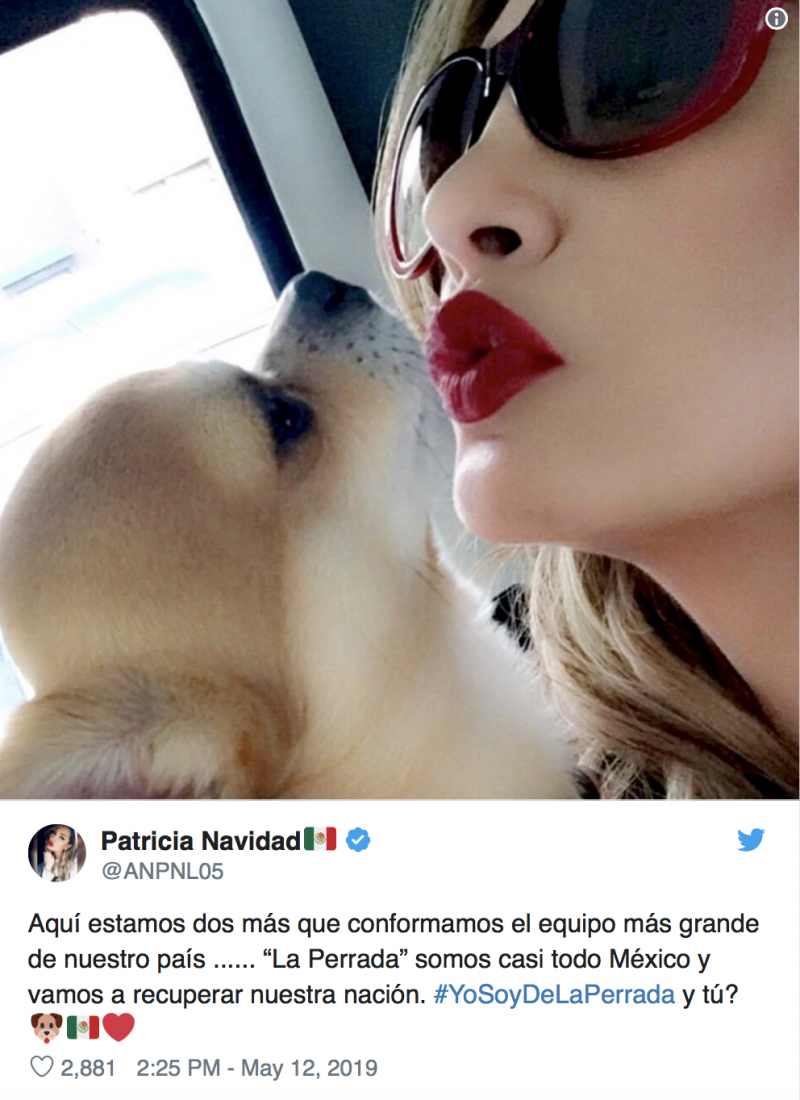 Todo empezó cuando Paty tuiteo una foto con su perro en la cual escribió: “Aquí estamos dos más que conformamos el equipo más grande de nuestro país ‘La Perrada’ somos casi todo en México y vamos a recuperar nuestra nación. #YoSoyDeLaPerrada y tú?”