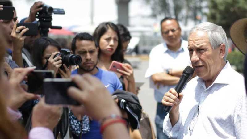 Visiblemente molesto tras repartir volantes, el ex rector de la Universidad de las Américas (Udlap), encaró amenazadoramente al comunicador e incluso lo ofendió al señalarle que esa era una pregunta estúpida.