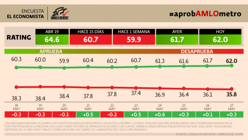 A principios de mes, la aceptación del jefe del Ejecutivo cayó dos puntos en el AprobAMLOmetro de Mitofsky.