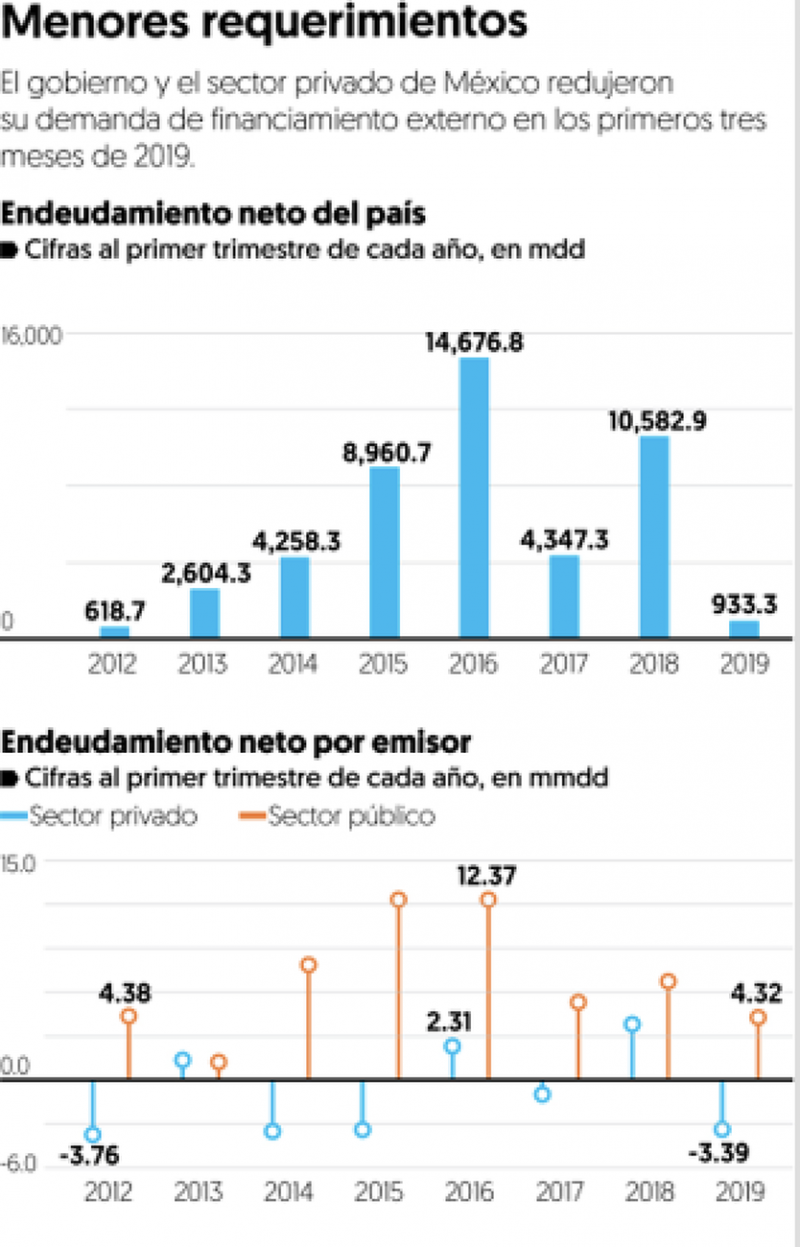 De acuerdo con información de El Financiero los números de la deuda suman 933 millones de dólares, la cifra más baja para un periodo similar desde 2012, y significativamente inferiores a los 10 mil 583 millones del mismo lapso de 2018, según las cifras de Banxico.