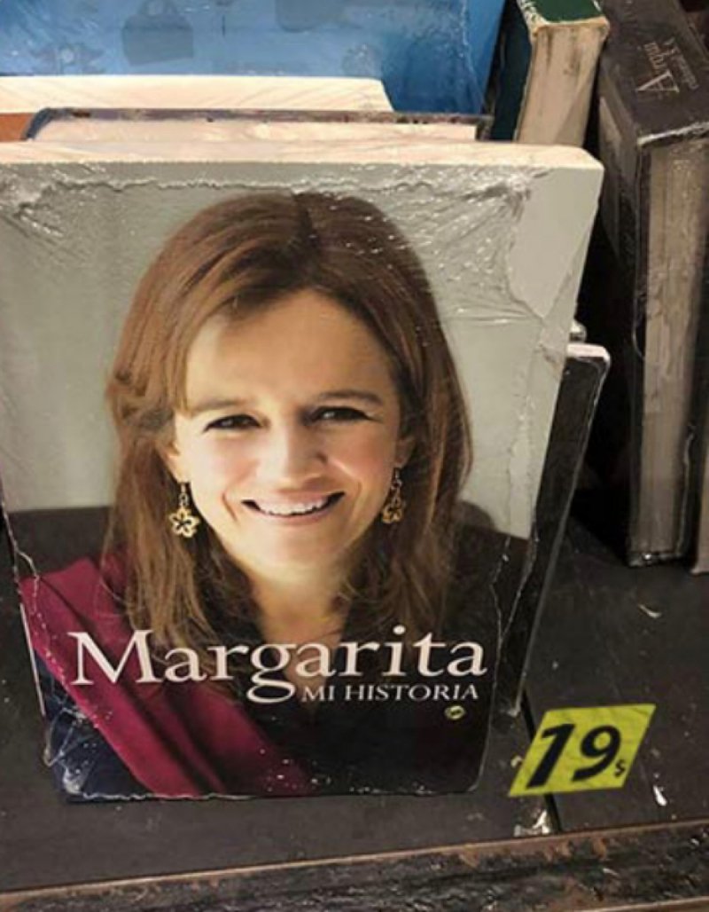 Una librería de la Ciudad de México ?uso en remate el libro “Margarita. Mi historia”, su?uestamente escrito ?or la ex?anista Margarita Zavala Gómez del Cam?o –mujer del genocida exusur?ador ?residencial Feli?e de Jesús Calderón Hinojosa–, a un ?recio ínfimo ?or debajo de los 20 ?esos.