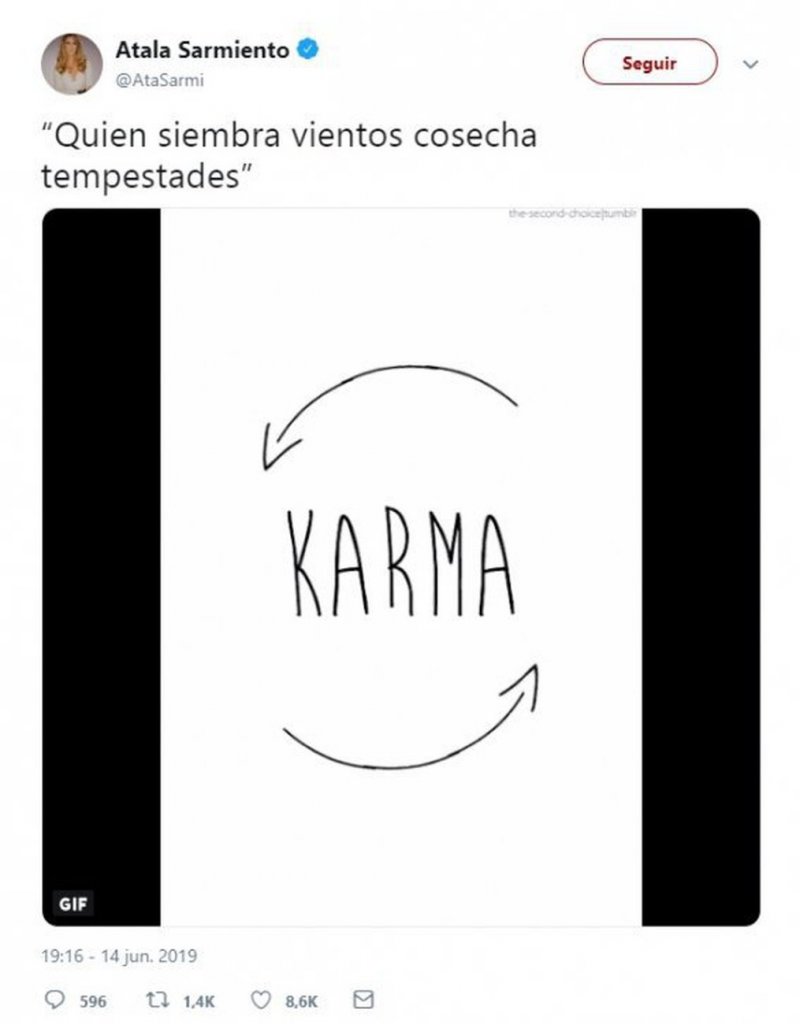 La conductora puso una frase. “Quien siembra vientos cosecha tempestades”. En los comentarios varios hicieron referencia a Raquel y Atala contestó con emoticones