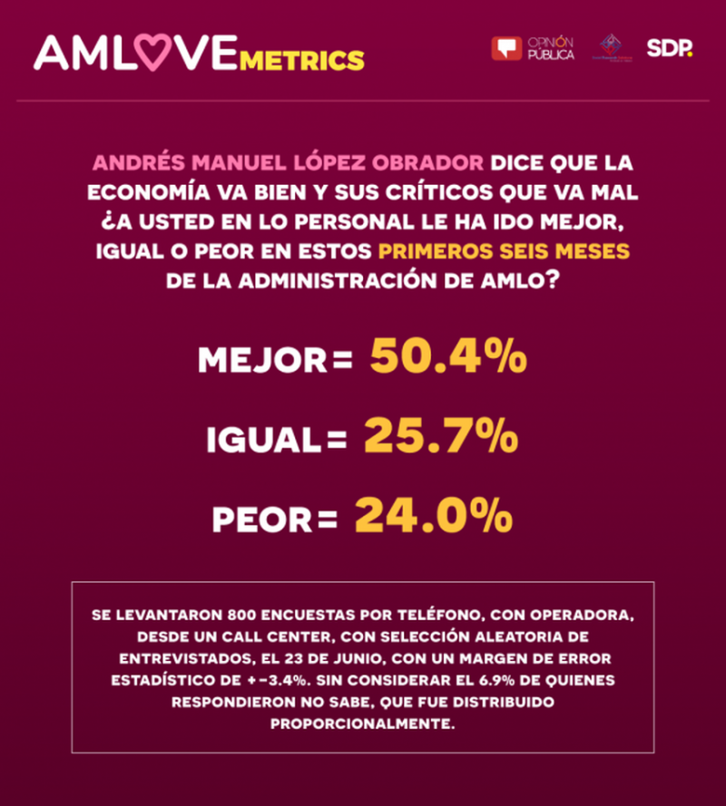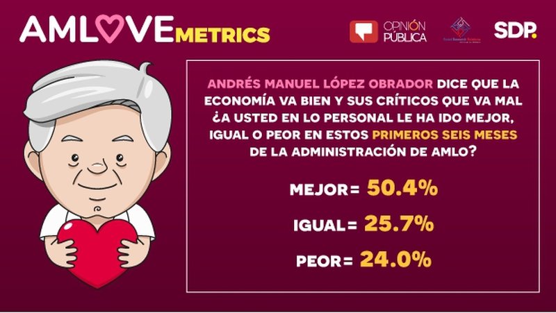 “Andrés Manuel López Obrador dice que la economía va bien y sus críticos que va mal. ¿A usted en lo personal le ha ido mejor, igual o peor en estos primeros seis meses de la administración de AMLO?" AMLOVEmetrics