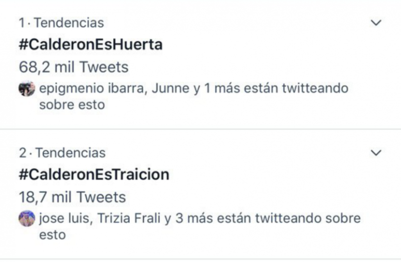 Desde el mediodía este jueves la red social Twitter comenzó a presentar una serie de tendencias en contra del ex presidente Felipe Calderón a partir de su posición de apoyo y promoción al paro que actualmente tiene tomadas algunas de las estaciones centrales de la Policía Federal Preventiva.