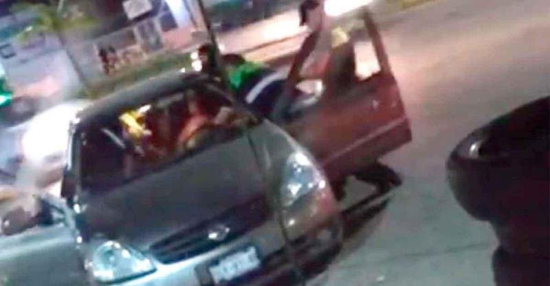 En evidente estado etílico, los elementos de Tránsito le solicitaron que se bajara de la unidad, ante la negativa procedieron a sacarlo, pero de una manera muy peculiar y con lujos de violencia. Mientras los dos menores, en medio del llanto por la escena, eran llevados a empujones y jalones por otro elemento fuera de la unidad y del radio del operativo.