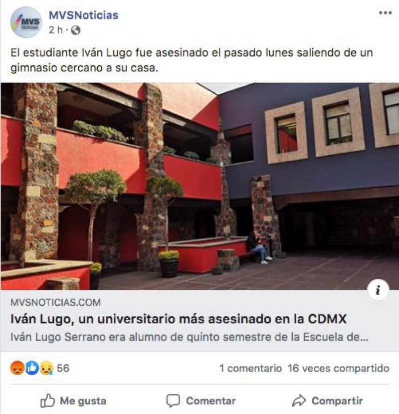 Medios de comunicación se encuentran difundiendo una FakeNews este miércoles relativa a la asesinato de un estudiante de la Universidad Panamericana. El hecho se llevó acabo el pasado 15 de julio en las inmediaciones de Ciudad Satélite, en el Estado de México, Dónde perdió la vida Iván Lugo.