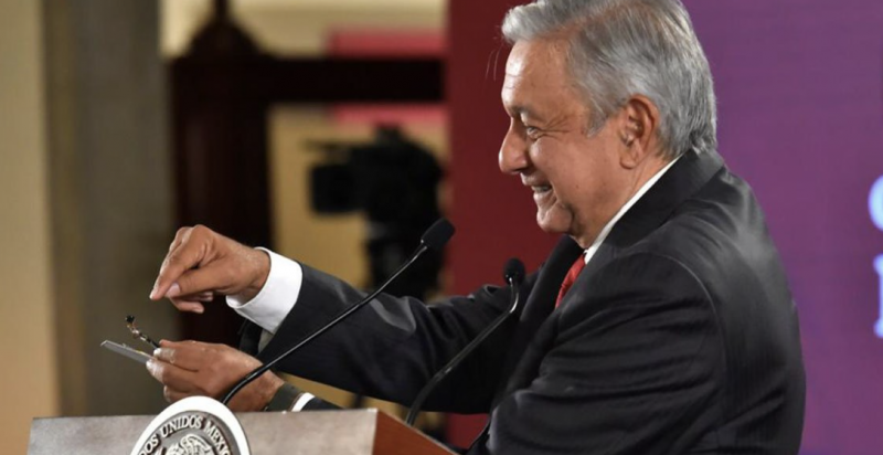 Durante su conferencia de prensa mañanera, el presidente López Obrador ordenó a sus colaboradores traer el aparato de su despacho en Palacio Nacional y mostró la mini cámara a los medios de comunicación.