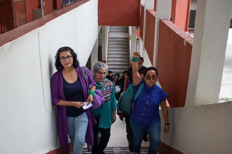 En la calle San Lorenzo un grupo de feministas llegan en grupo la Universidad Autónoma de la Ciudad de México. Como cada miércoles, vienen al plantel de la Colonia del Valle a su seminario de tesis con la profesora Claudia Domínguez.