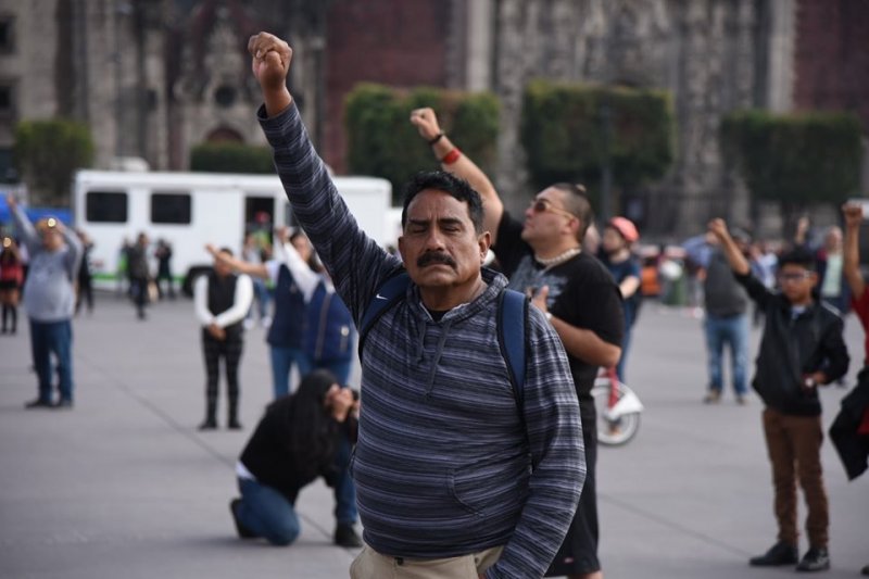 Mexicanos colocan en alto sus puños durante alerta sísmica como muestra de respeto y solidaridad