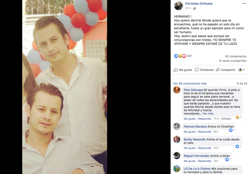 Junto al mensaje, Christian Orihuela puso una foto donde aparece junto a su hermano Raúl Michel.