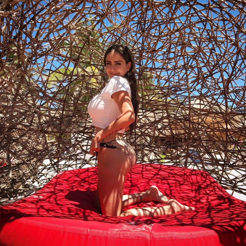A través de su cuenta oficial de Instagram la hija de Alex Lora publicó una nueva instantánea en la que aparece luciendo sus prominentes atributos delanteros con una pequeña blusa blanca y también viste la tanga de un traje de