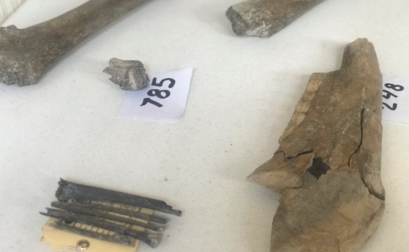 Los restos óseos presentan indicios de que los animales fueron cazados, además de que fue encontrada materia de ceniza volcánica.