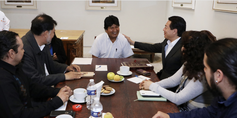 Mario Delgado, Dolores Padierna y Gerardo Fernández Noroña se reunieron esta mañana con Evo Morales en el Museo de la Ciudad de México.
