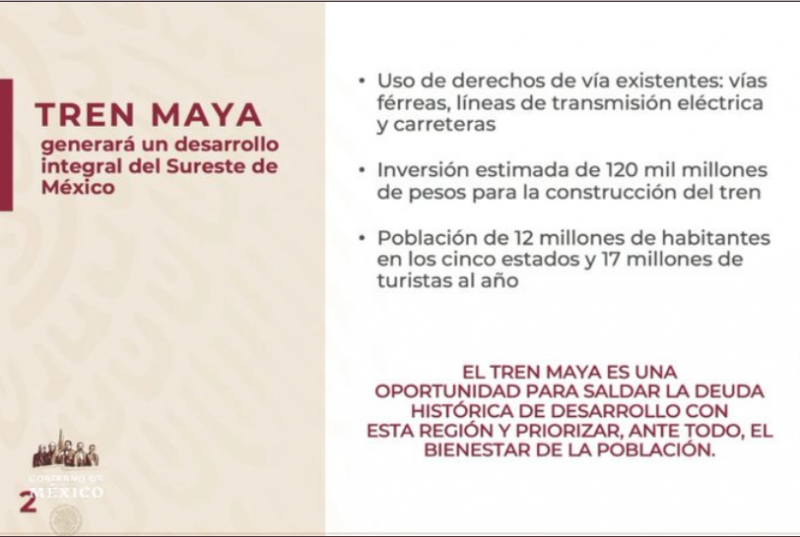 “Se hará una consulta ciudadana para la creación del Tren Maya en comunidades indígenas de toda la región del sureste incluye Chiapas, Tabasco, Campeche, Yucatán y Quintana Roo“, reveló el presidente de México.