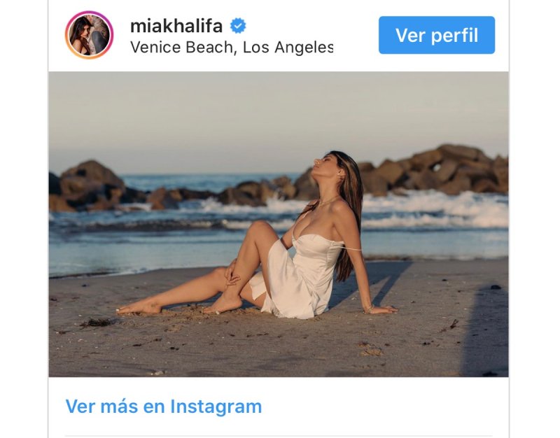 Dicha publicación muestra a Mia Khalifa con un conjunto de color blanco a pleno rayo de Sol en la playa.