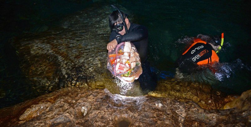 Este año, en 9 cenotes se retiraron 6 toneladas, incluida la llamada basura tecnológica, como baterías, celulares, televisiones y piezas electrónicas.