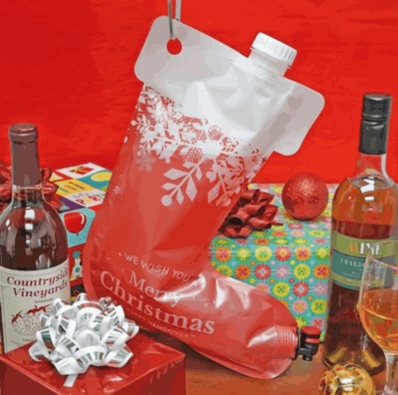 Con un valor de 13 dólares, viene en un festivo color rojo y blanco, adornado con las palabras “Le deseamos una feliz Navidad y una feliz resaca”.