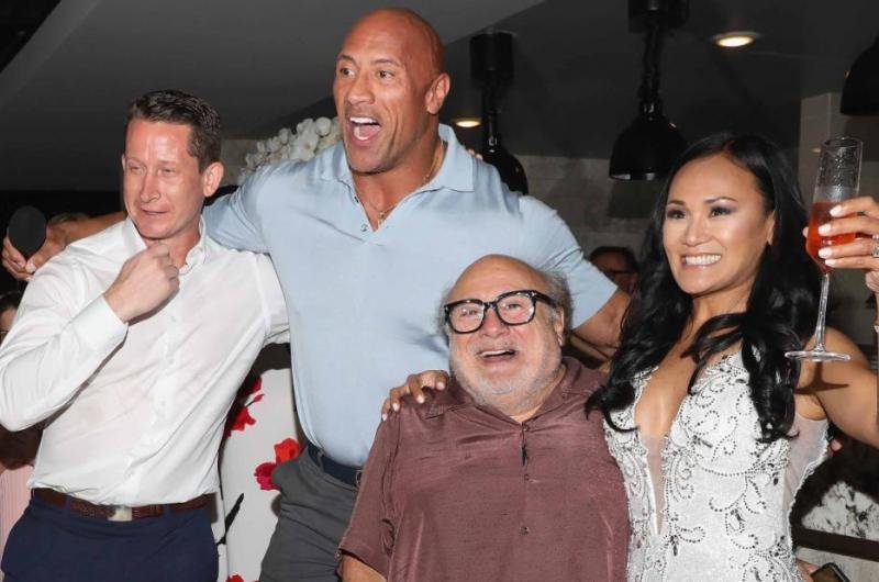 “La Roca” escribió que se encontraba tomando un tequila con DeVito en el atardecer, después de una larga jornada de entrevistas de prensa para la película cuando se les ocurrió sorprender a los novios.
