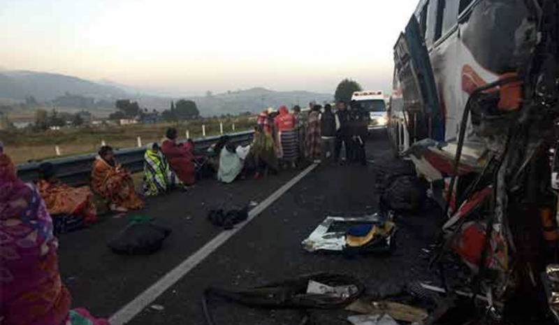 Los peregrinos viajaban en el camión que quedó con el frente completamente deshecho, incluso la imagen de la Virgen de Guadalupe que llevaban al frente fue casi destruida.