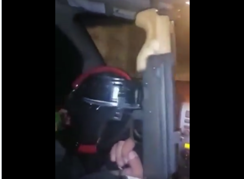 En el segundo vídeo se escucha que tiran algunos disparos al aire momentos antes de que el comando llegue a las instalaciones de la Dirección de Policía.