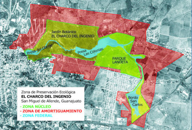 En entrevista con SinEmbargo, Mario Hernández, director del Jardín Botánico El Charco del Ingenio, una de las organizaciones que se posicionó en contra de la solicitud de los Fox, mencionó que la reserva fue decretada en el año 2005 y en la actualidad comprende 380 hectáreas que integran cuatro predios: El Obraje, el parque Landeta, el Parque Bicentenario, y el Jardín Botánico El Charco del Ingenio.