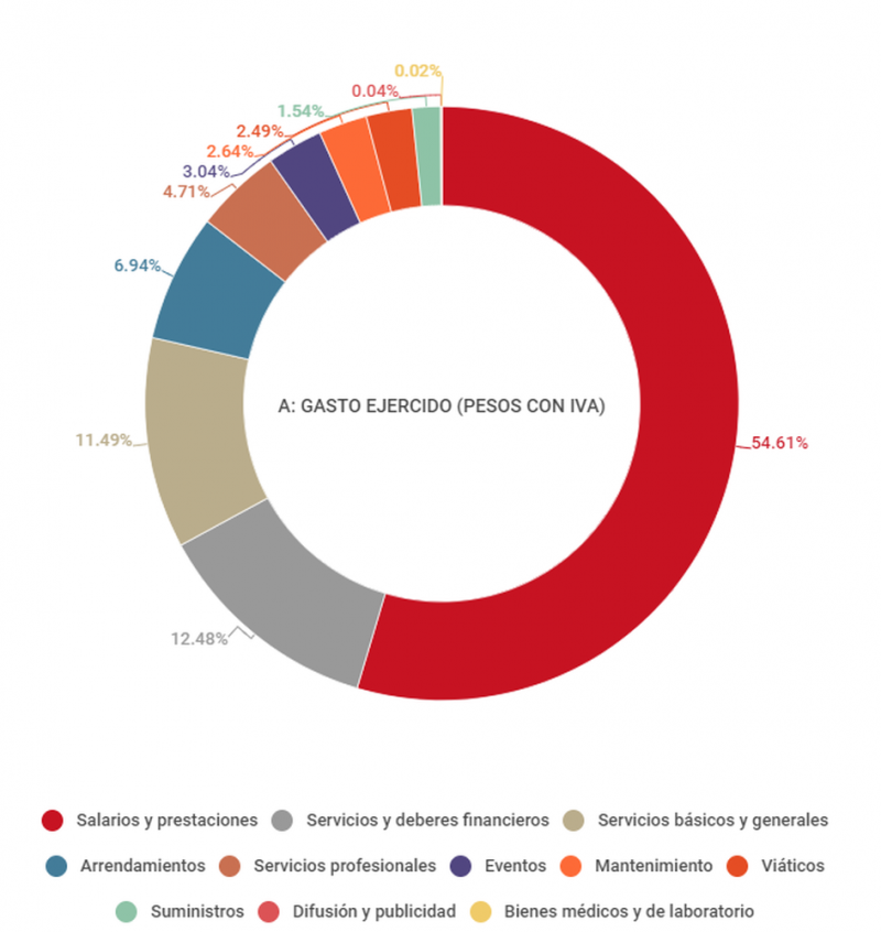 La partida presupuestaria que incluye honorarios, remuneraciones, asignaciones, compensaciones, seguros, gratificaciones y primas de 1 mil 402 empleados registrados tuvo un tope de gastos de 866 millones 666 mil 420 pesos en 2019, de acuerdo con el Presupuesto de Egresos de la Federación (PEF).